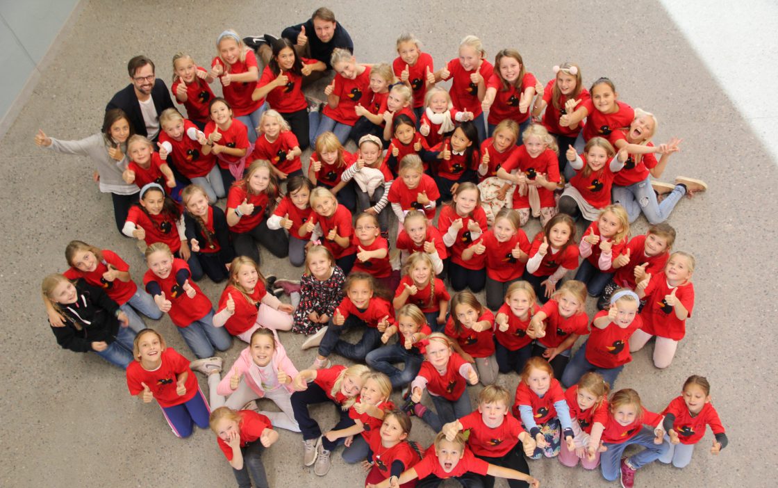 Vi øver i Allrommet på skolen hver mandag og har det kjempegøy!